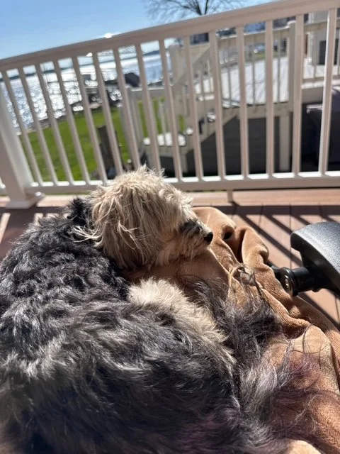 But the fact is that it is not a nightmare, so I get up and make sure that I am remaining present in each day and not burying my feelings. I sit with them each day. Then Jinx and I sit in the sun and watch the lake and we walk around the yard. He plays in the water and I just watch him, snapping photos and videos that I’ll mourn over later. This is what the last few weeks have looked like for us in between meds several times per day and making meals that I coax him into eating.